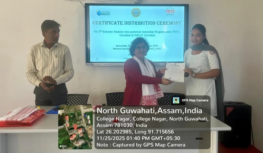 Certificate distribution ceremony on successful completion of internships by 94 students in highly sought-after professional courses at TRTC, Guwahati and NIELIT, Guwahati