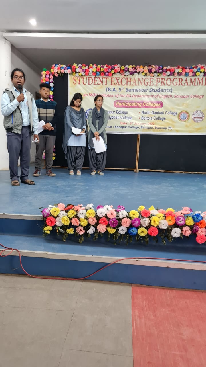 The English department of the College was born with the college itself in 1962. Apart from teaching in the Higher Secondary and Degree classes, the department started offering Honours courses since 1996. Seminars, workshops, movie shows and reviews, educational trips, talks etc. are held regularly for the benefit of the students. As outreach programmes, the department also offers help in academic matters to the neighbouring vernacular medium schools. With the importance of English, especially Communicative English growing day by day, emphasis has been laid on equipping the students with the required skill to communicate in English. The library and a UGC granted Language Laboratory of the department caters well to the needs of the students. The students and teachers of the department contribute regularly to the departmental wall magazine Arora, where vibrant discussions and analysis of recent development and trends in the field of literature, criticism, language and art is held.