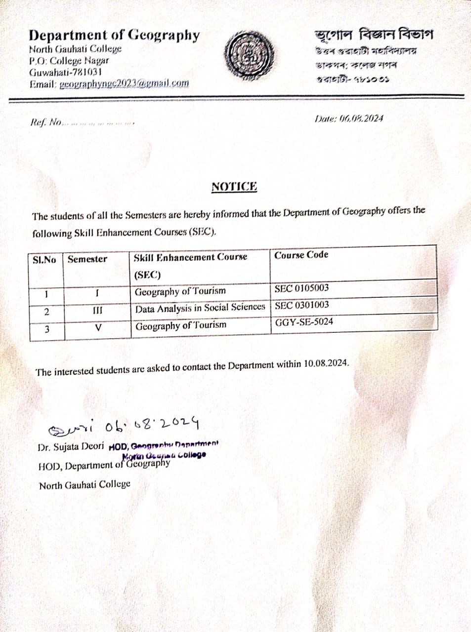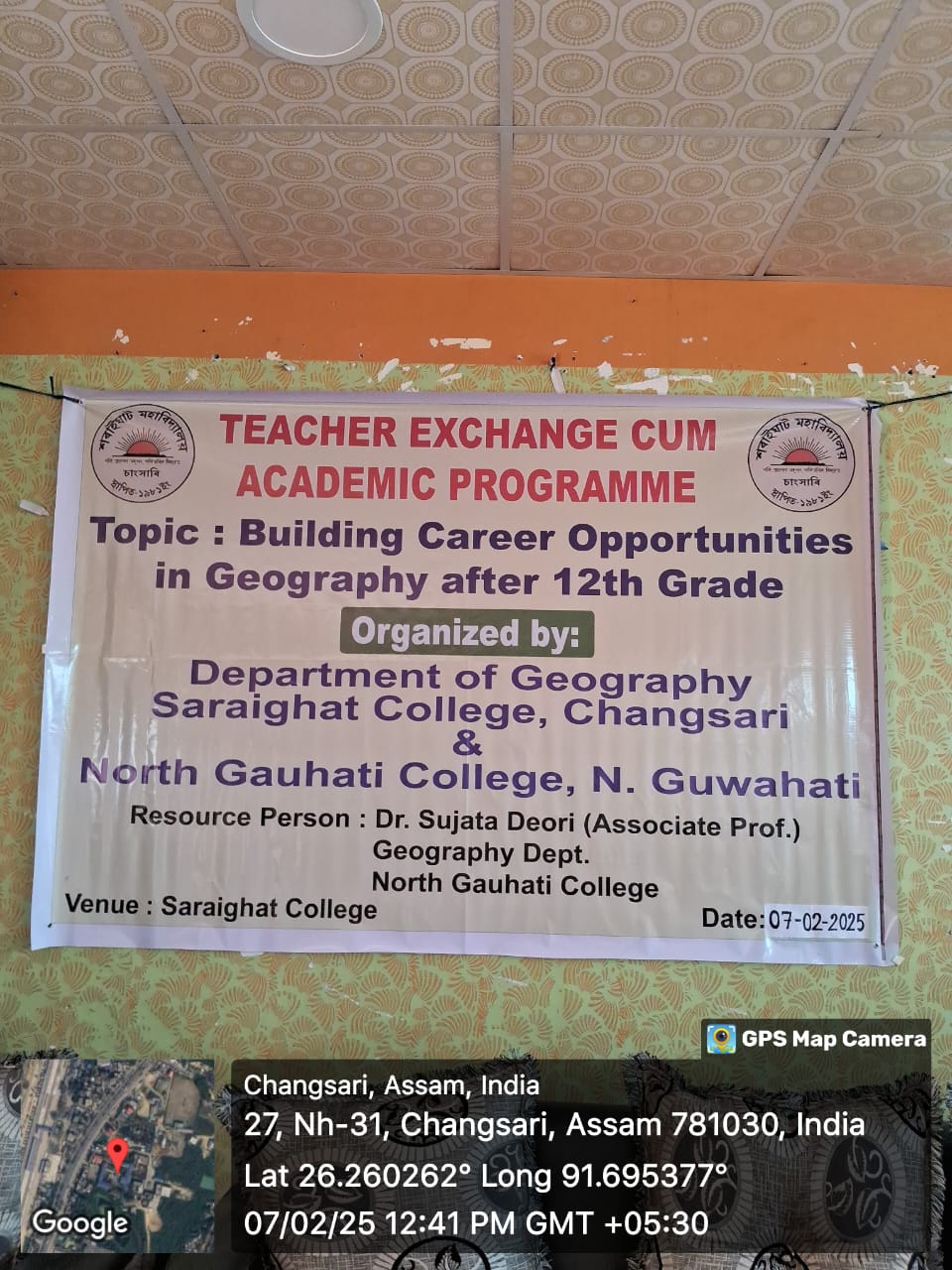 218 | Teacher Exchange cum Academic Programme | Teacher Exchange cum Academic Pogramme on the Topic" Building Career Opportunities in Geography after 12th Grade", was organised by Deparrment of Geography, Saraighat College and North Gauhati College | 2025-02-07 | View File |