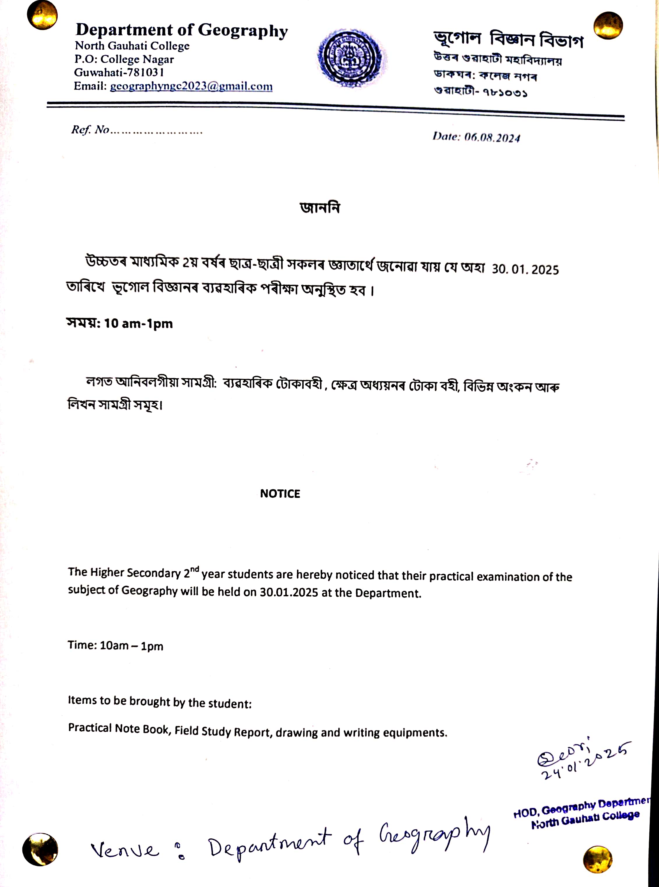 234 | MoU signed for internship Programme | A MoU was signed today between Department of Geography and Accelcraft Institute of Geoinformatics Technology on 20.04.2025 for Internship Programme of the students | 2025-04-26 | View File |