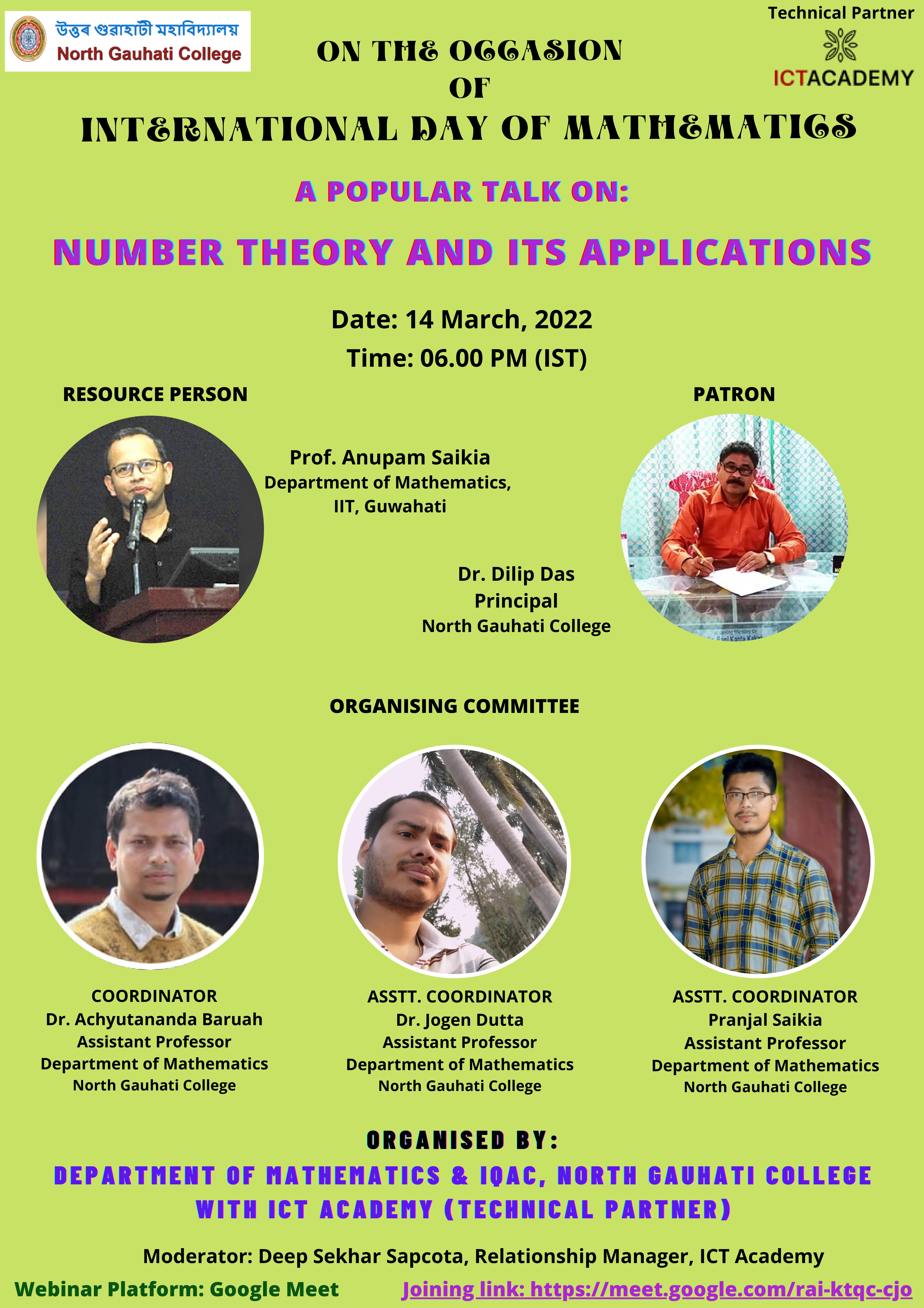 The department wants to work for excellence in mathematics education so that the students of mathematics of the college are highly benefited and brilliant students of the state, especially those from the (greater North Gauhati area) northern part of Kamrup district get attracted to the department.