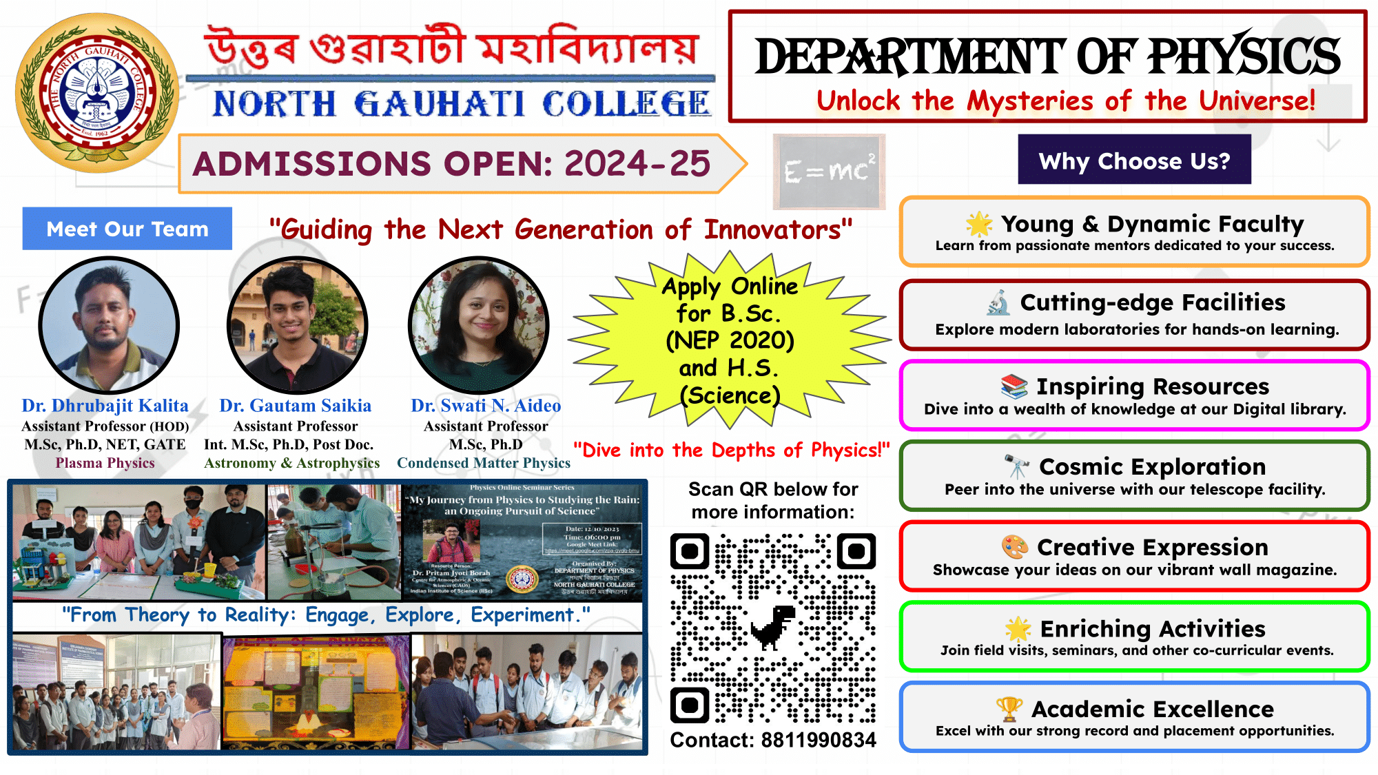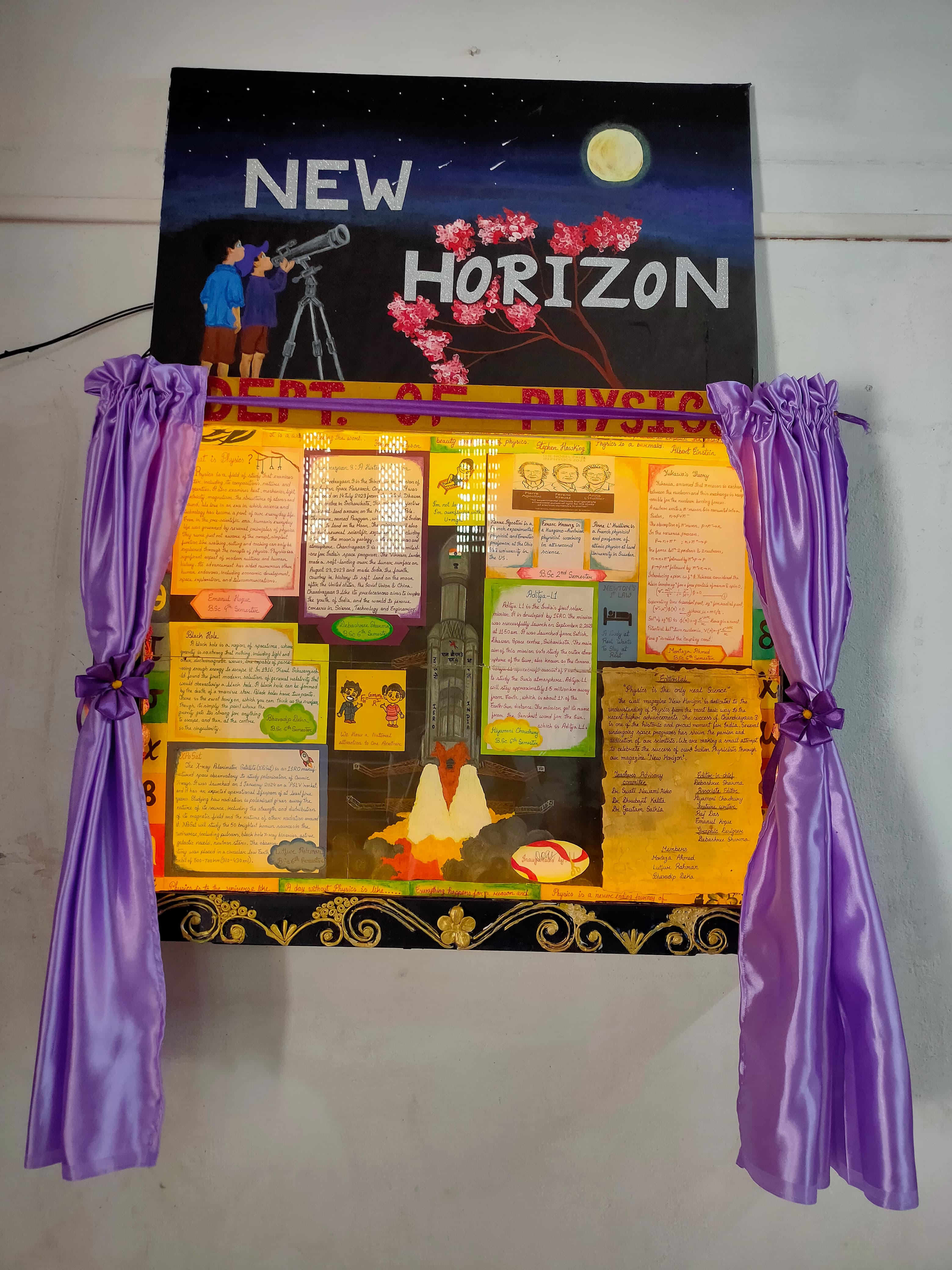 Today, the Department stands strong with well-equipped laboratories and a dedicated computer laboratory catering to Honours students. It actively engages in community outreach through initiatives like Online Seminars and Sky Watching Programs. Regular field trips and laboratory visits are organized to enrich student learning experiences, while participation in co-curricular activities is strongly encouraged. The department showcases student and faculty contributions on contemporary scientific topics through its wall magazine "New Horizon".