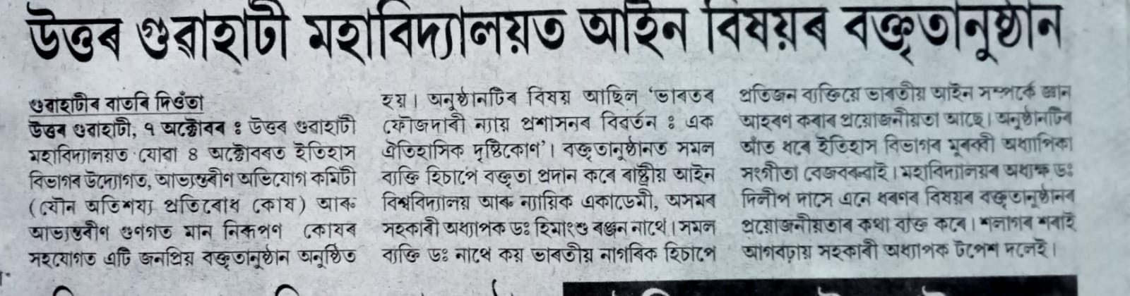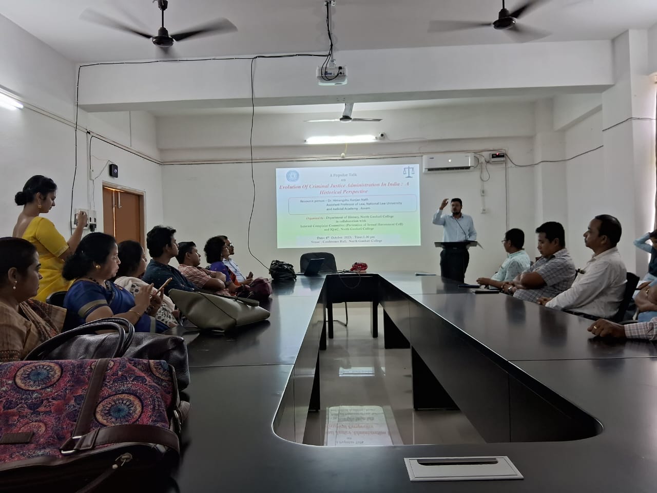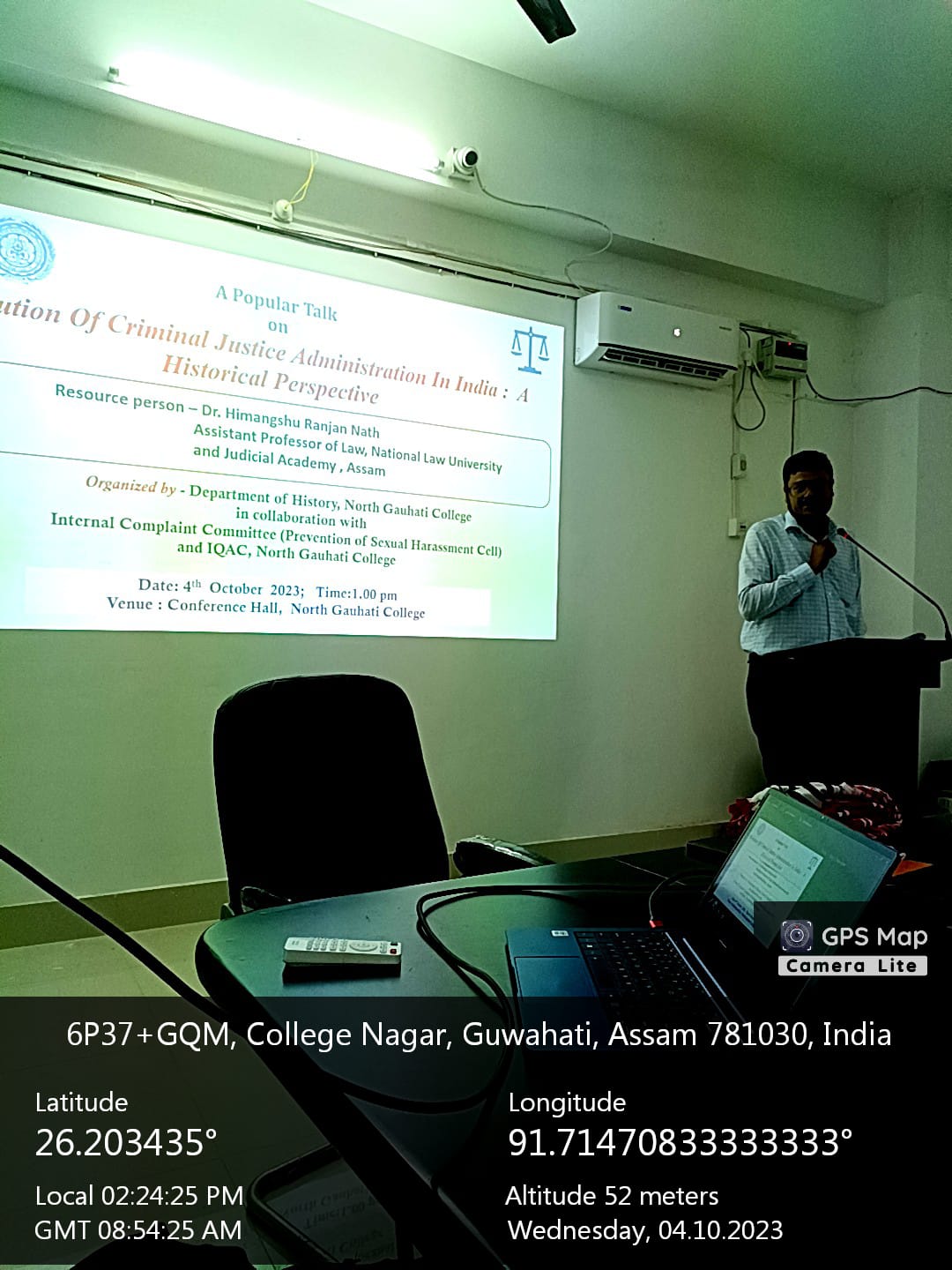 Popular talk on "Evolution of Criminal Justice Administration in India" by Dr. Himangshu Ranjan Nath organized by Dpt. of History and Internal Complaint Committee, NGC on 04.10.2023