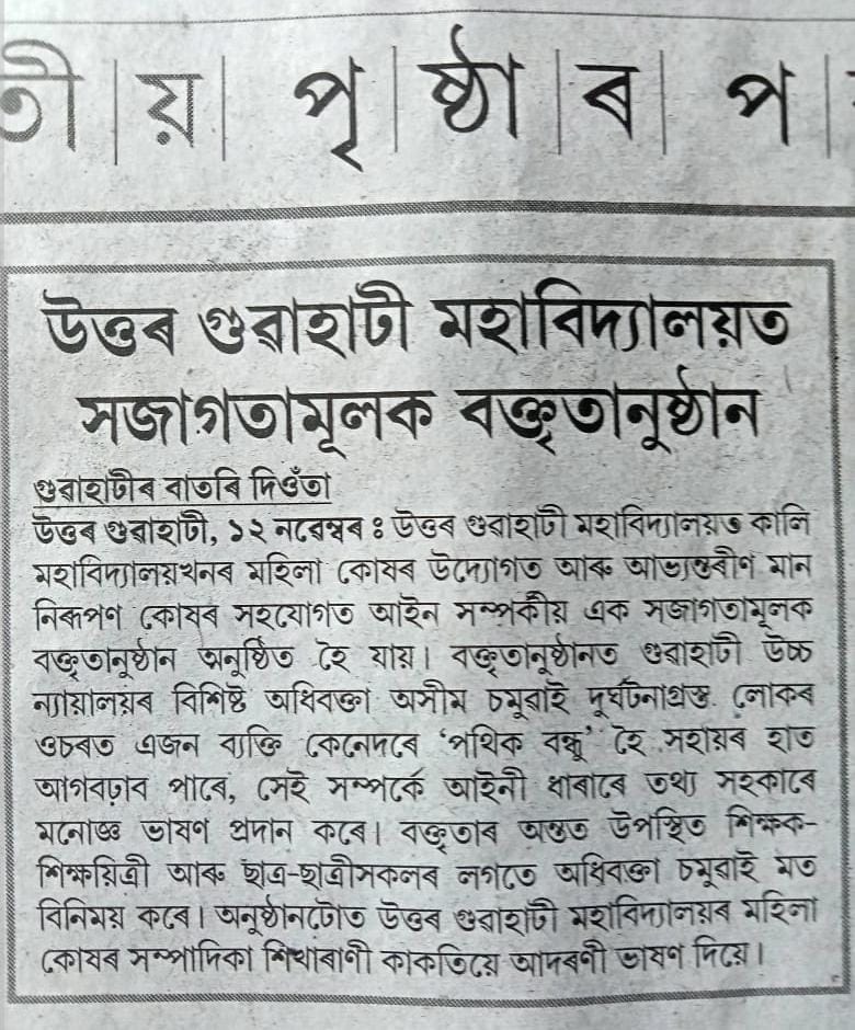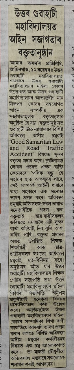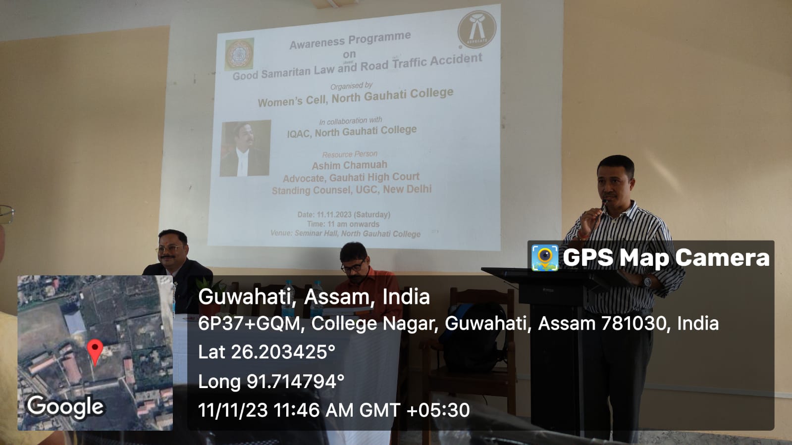 Awareness Programme on "Good Samaritan Law and Road Traffic Accident" organised by Womens Cell, North Gauhati College on 11.11.2023