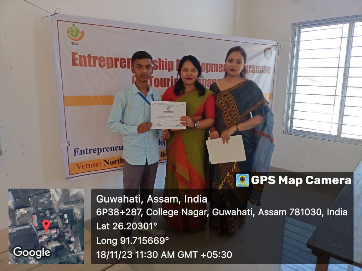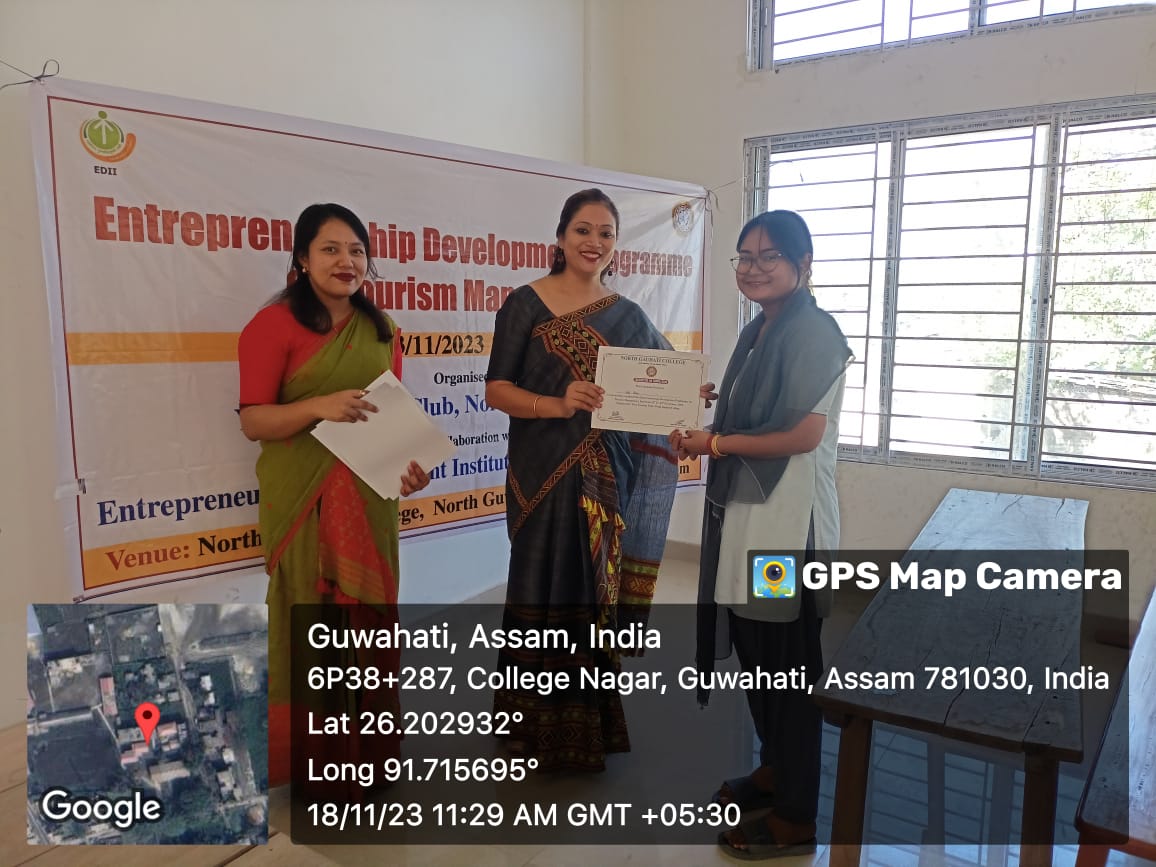 "Entrepreneurship Development Programme on Tourism Management" organised by Yuva Tourism Club, North Gauhati College from 13.11.2023 to 18.11.2023
