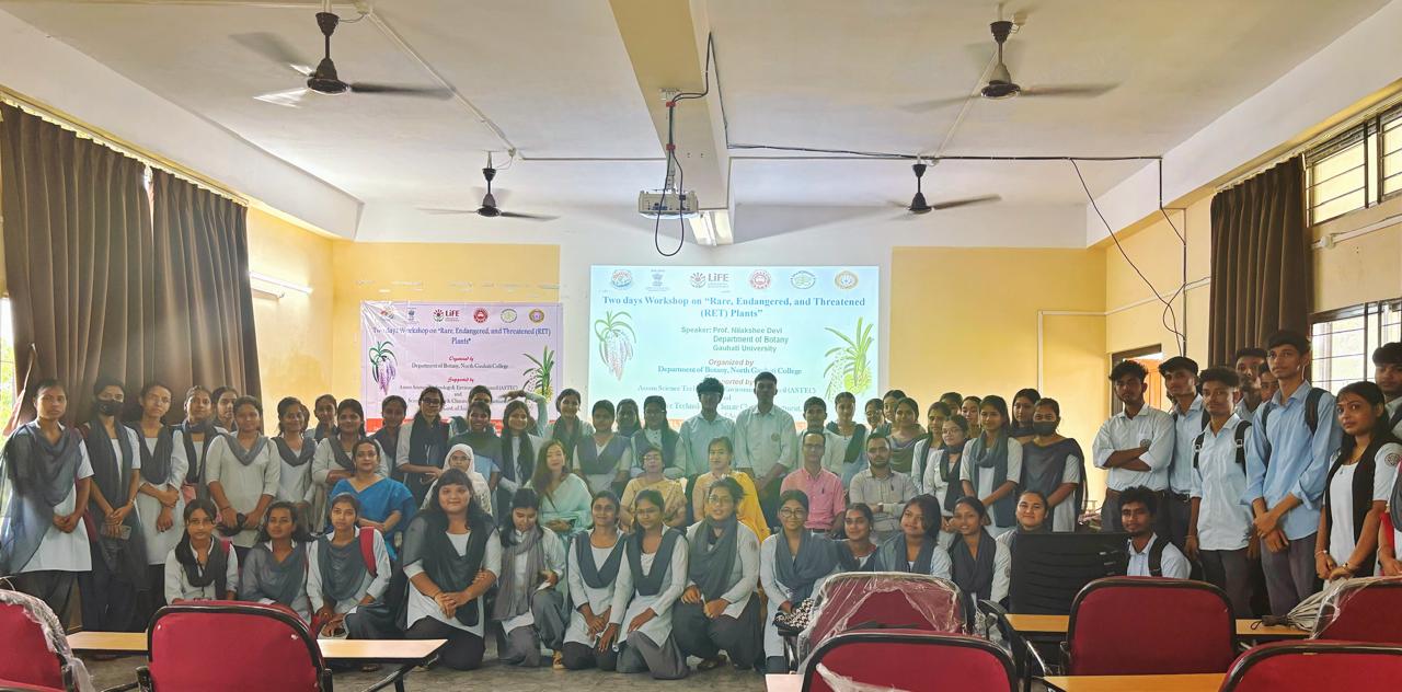 Popular talk by Prof. Nilakshee Devi on Day 1 of Workshop on "Rare, Endangered, and Threatened (RET) Plants" organised by Dept. of Botany, North Gauhati College and supported by ASTEC, and Science Technology & Climate Change on 05.10.2024