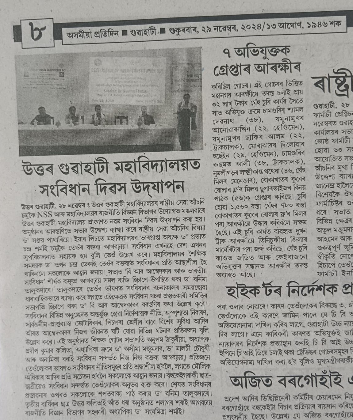 Celebration of Indian Constitution Day by NSS Unit and Dept. of Political Science, North Gauhati College on 26.11.2024