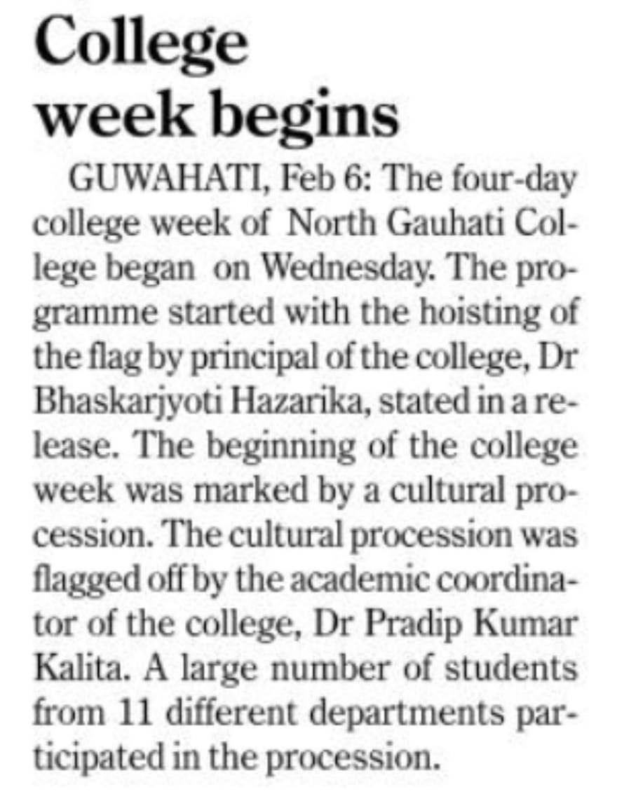 College Week 2025 organised at North Gauhati College premises during 04.02.2025 to 08.02.2025