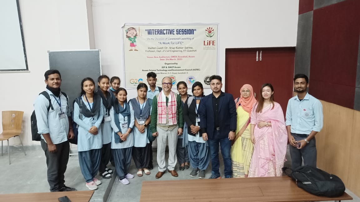 Students from North Gauhati College taking part in "A week for LiFE" organized by ASTEC at GMCH auditorium on 21.03.2023