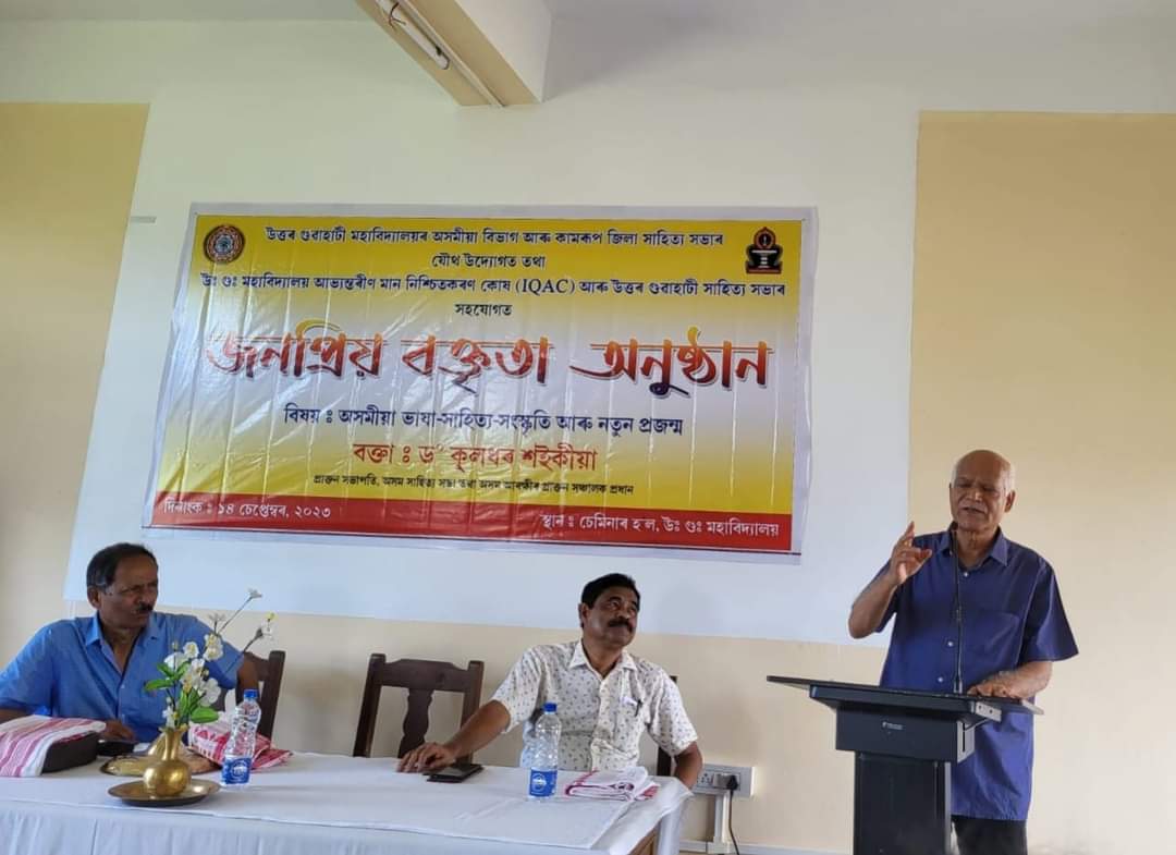 Popular talk by Dr. Kuladhar Saikia organized by Department of Assamese, NGC and Assam Sahitya Sabha (Kamrup division) on 14.09.2023