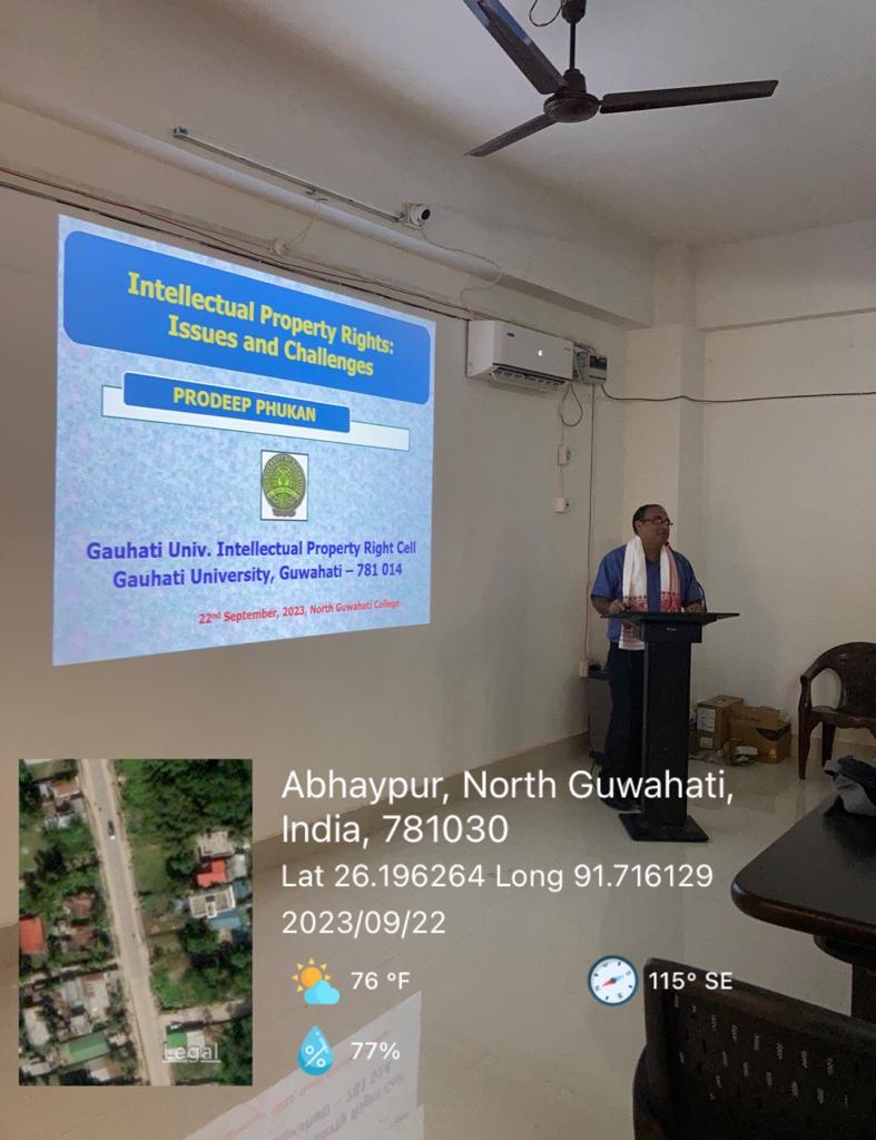 Talk on "Intellectual Property Rights: Issues and Challenges" by Prof. Prodeep Phukan organized by IPR Cell on 22.09.2023