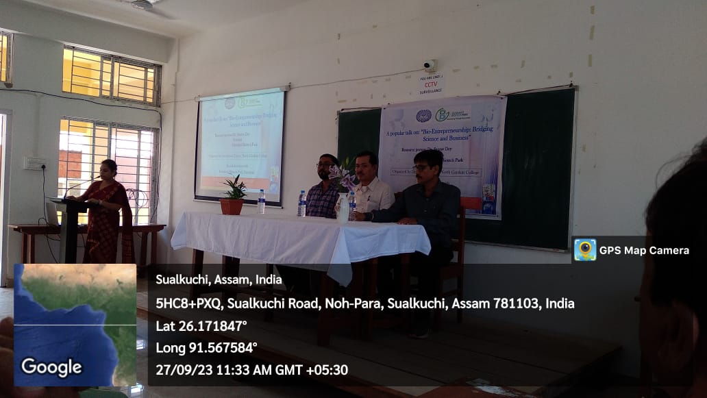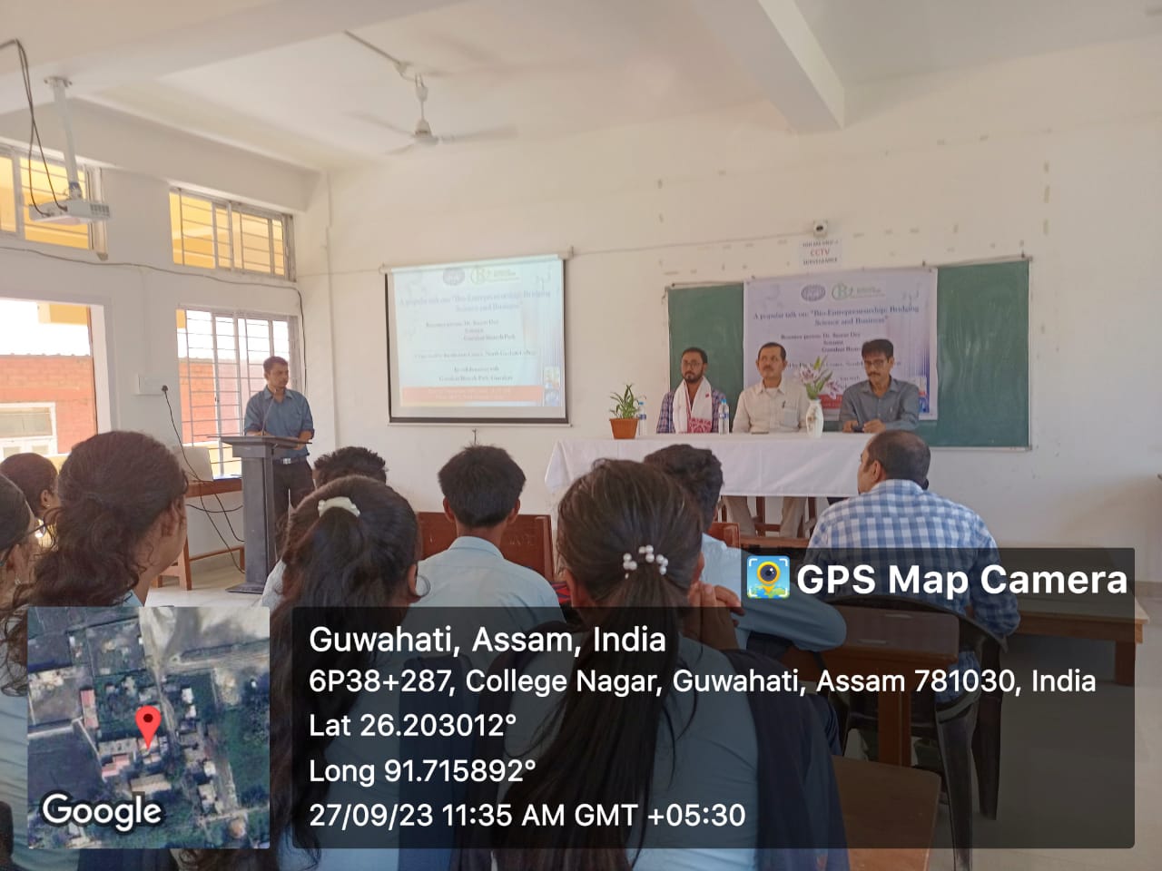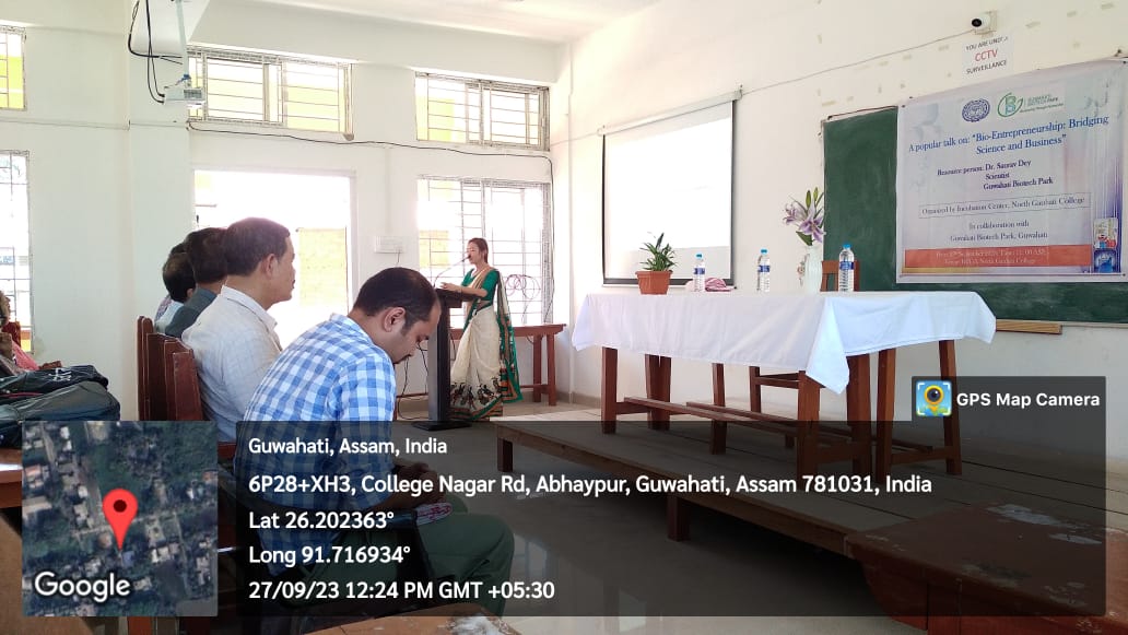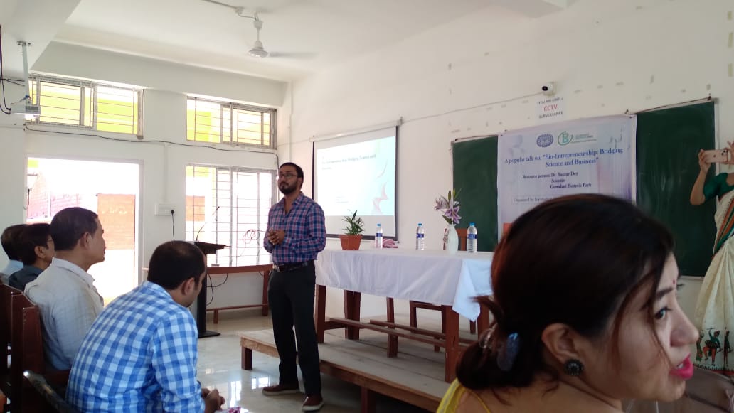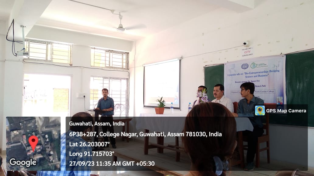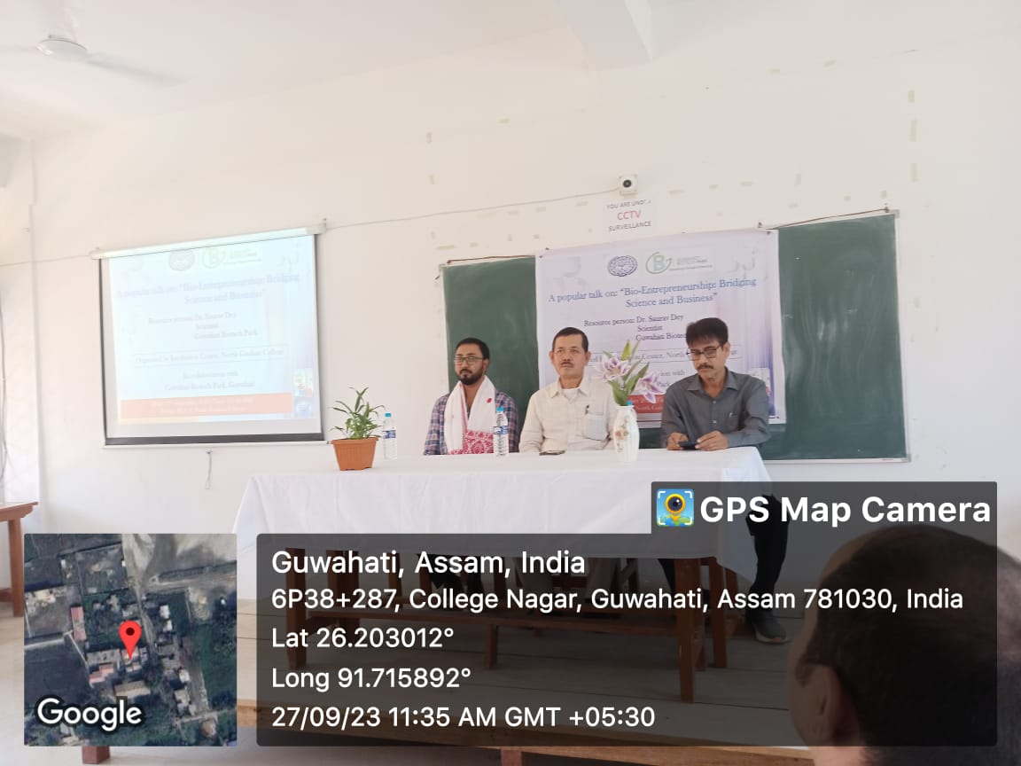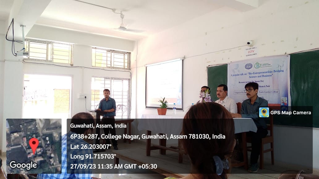 Talk on "Bio-Entrepreneurship: Bridging Science and Business" by Dr. Saurav Dey, organized by Incubation Centre, NGC on 27.09.2023